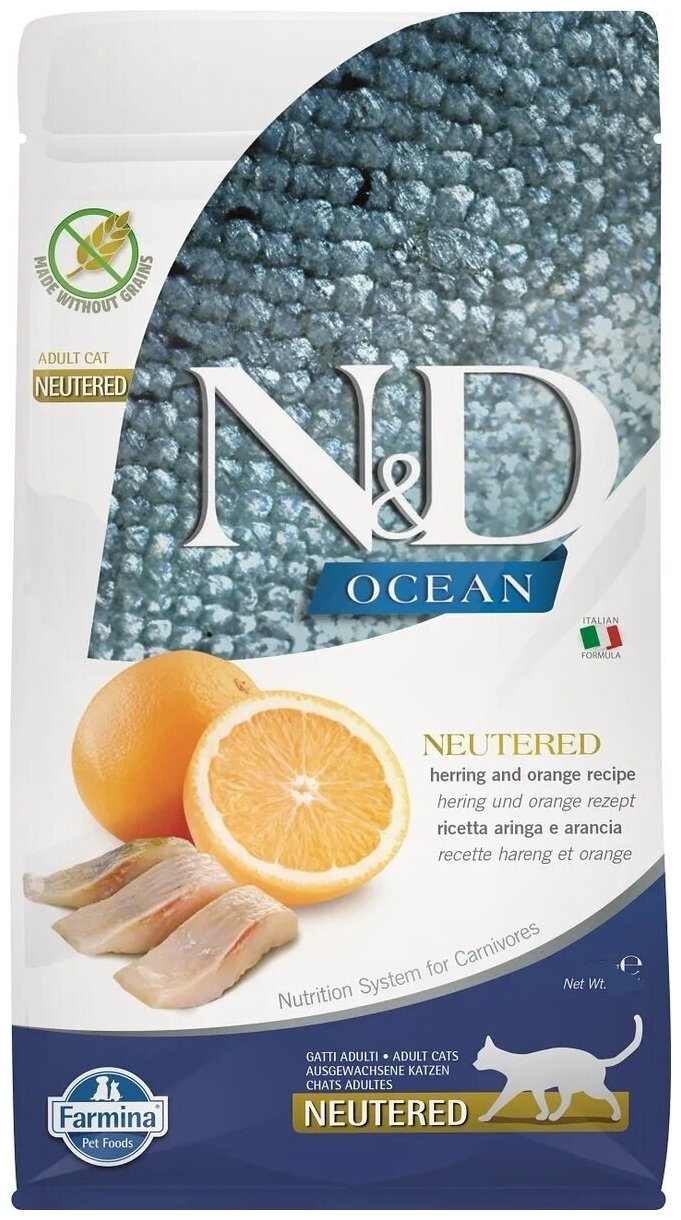 Купить Фармина N&D OCEAN LINE для кошек OCEAN HERRING&ORANGE Neutered adult 1,5кг