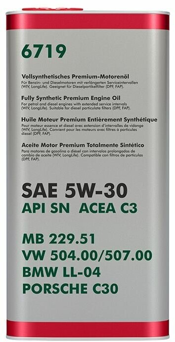 FF 6719 for VW Volkswagen Audi Skoda Seat 5W-30 5л ж/б масло моторное