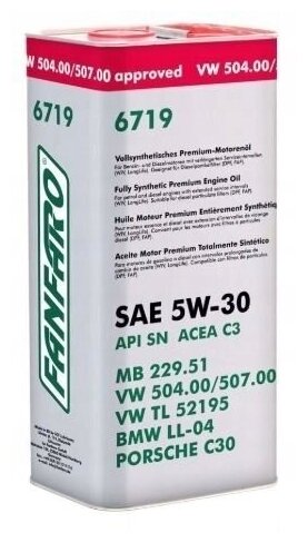 Масло моторное FANFARO Volkswagen Longlife 5w30 5л интересное: