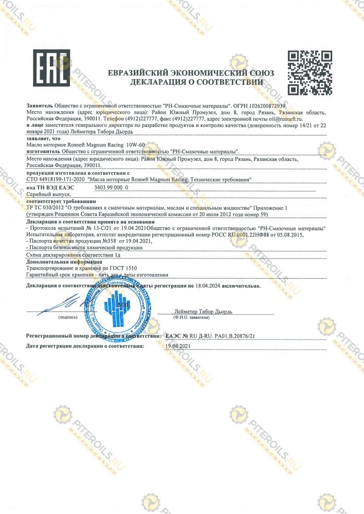 Ниже Вы можете прочитать отзывы на Масло моторное Rosneft Racing 10W60 1л, ознакомится с подробными характеристиками, посмотреть интересные обзоры и фотографии на Масло моторное Rosneft Racing 10W60 1л.