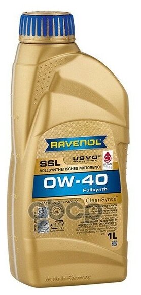 RAVENOL 1111108001 Масло моторное SSL 0W-40 1л (синтетика+ПАО)