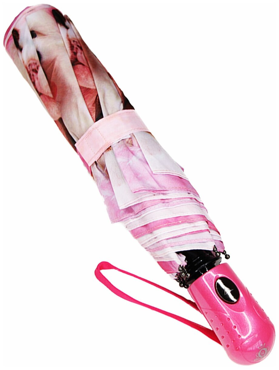 Женский складной зонт с собачками Rain-Proof 2040/розовый