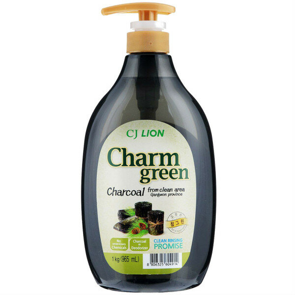 LION CHARMGREEN 1kg pump Средство для мытья посуды, овощей и фруктов древесный уголь (Древесный угол