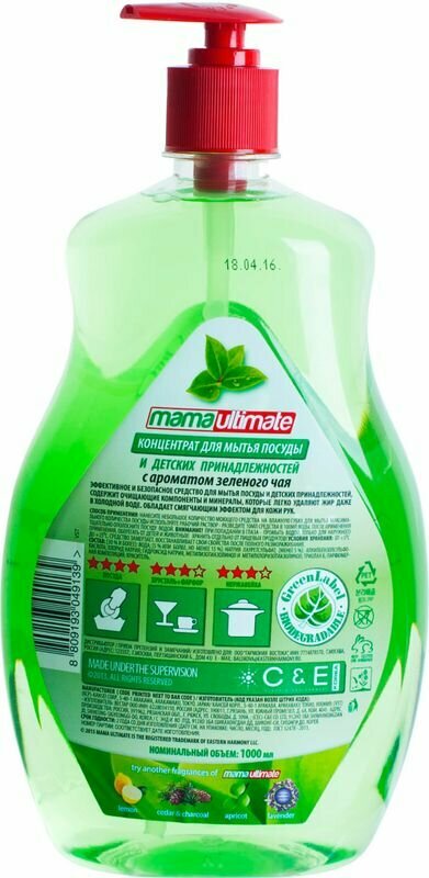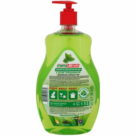 Средство-концентрат для мытья посуды, фруктов, овощей и детских принадлежностей Mama Ultimate, зеленый чай, 1 л