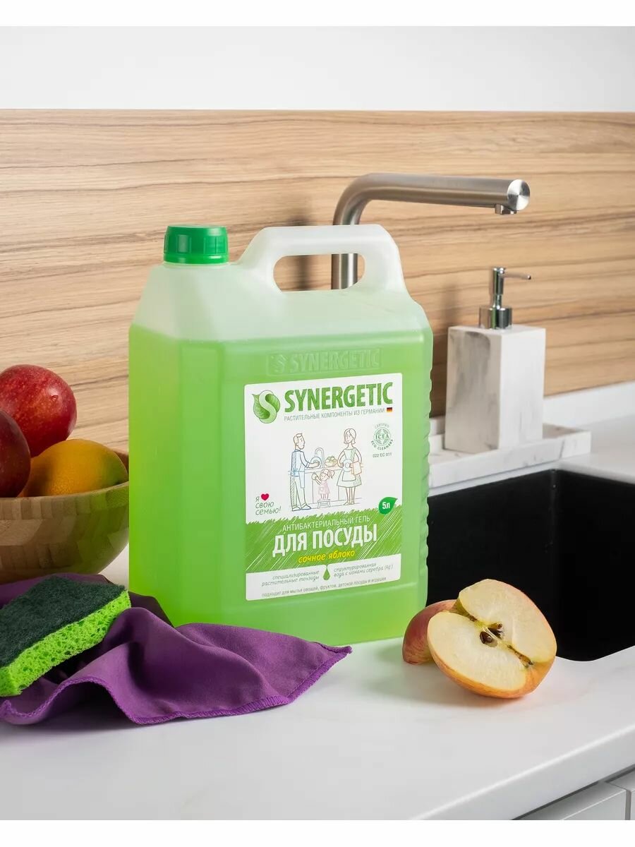 СохранитьSynergetic Антибактериальный гель для мытья посуды Сочное яблоко сменный блок, 5 л, 2 уп. интересное: