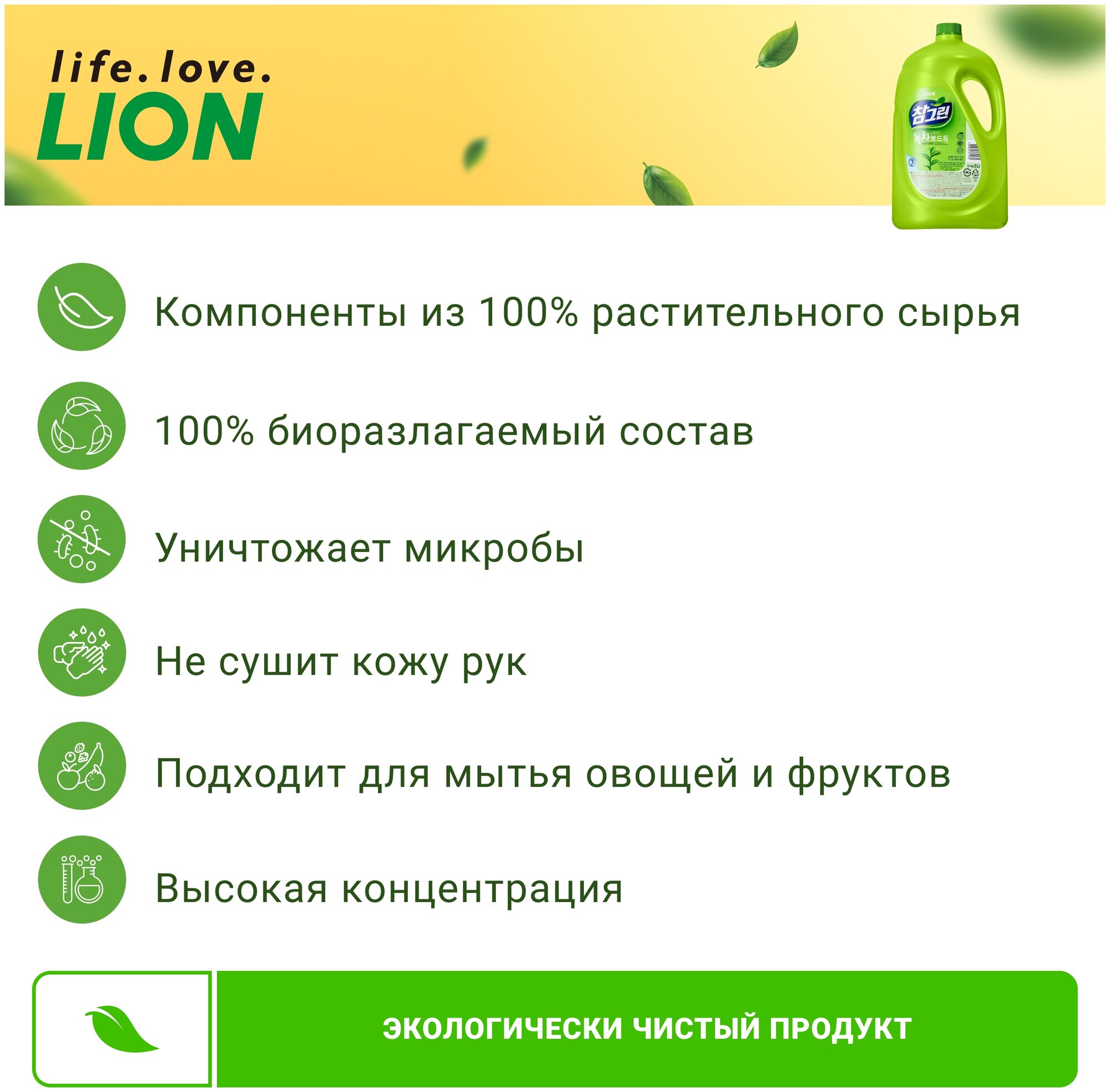 Lion Средство для мытья посуды, овощей и фруктов Chamgreen Green Tea & Lemon Peel, 3л