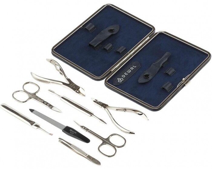 Маникюрный набор DEWAL, 8пр. Футляр: натуральная кожа, цвет синий