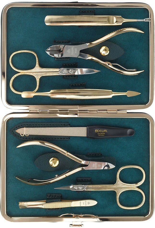 Маникюрный набор DEWAL, 8пр. Футляр: натуральная кожа, цвет зеленый