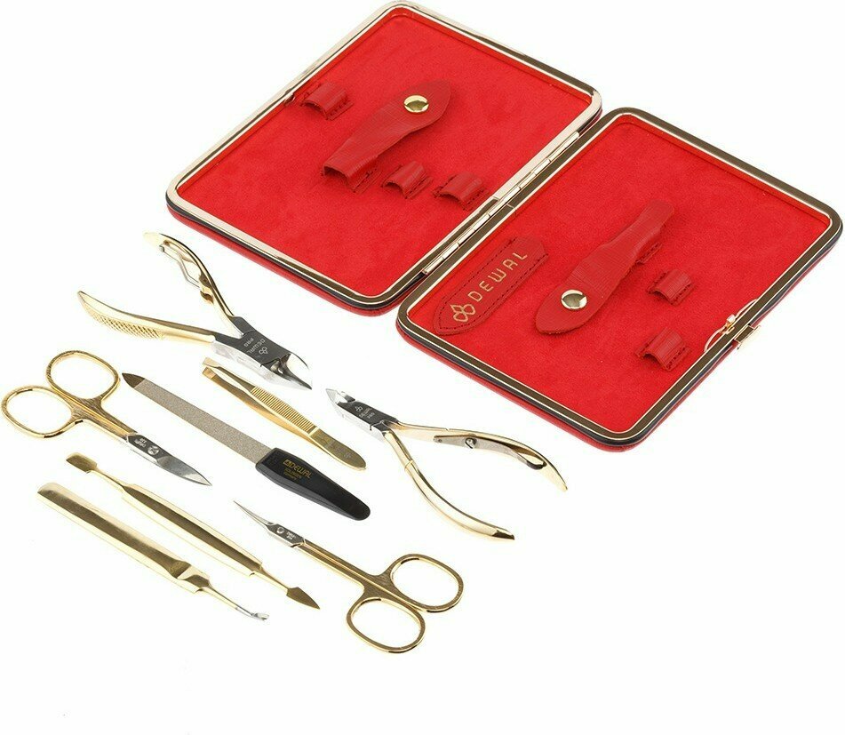 Dewal 906RED Маникюрный набор dewal, 8пр. футляр: натуральная кожа, цвет красный