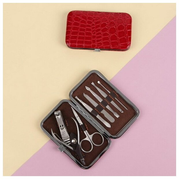 Набор маникюрный «Рептилия», 8 предметов, в футляре, цвет красный