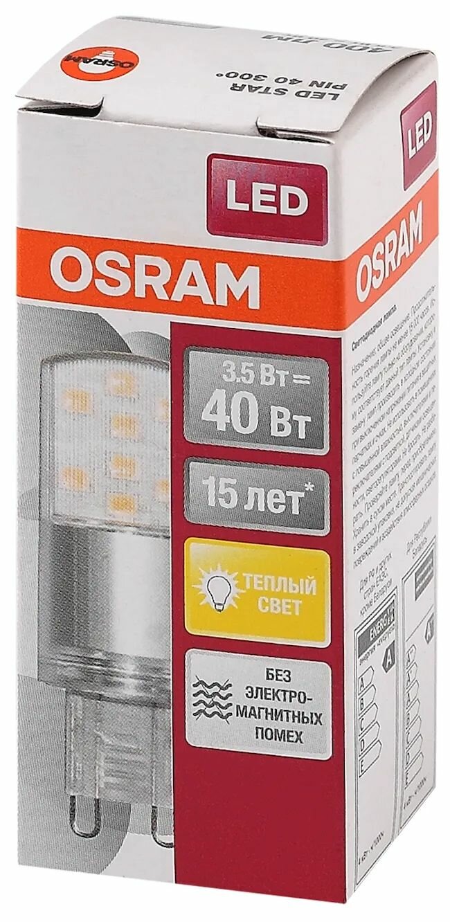 Светодиодная лампа Osram LED Star, капсульная, 3.5Вт, G9, 400 Лм, 2700 К, теплый белый свет 40580753