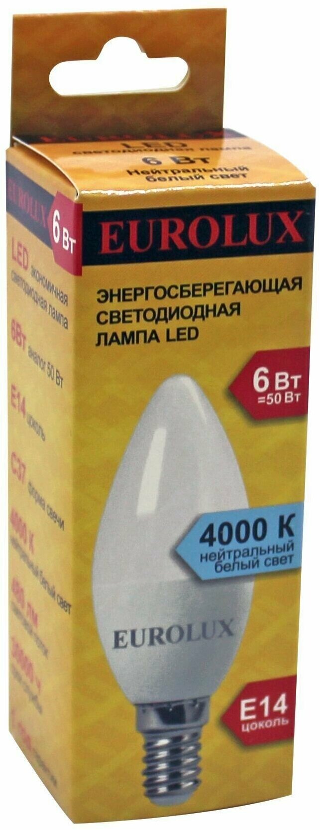 Лампа Eurolux светодиодная LL-E-C37-6W-230-4K-E14