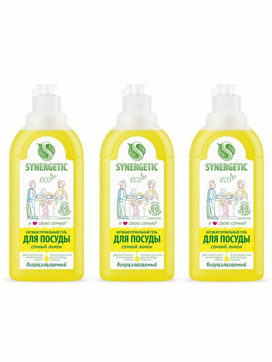 Synergetic Антибактериальный гель для мытья посуды Сочный лимон, 0.5 л, 3 уп.