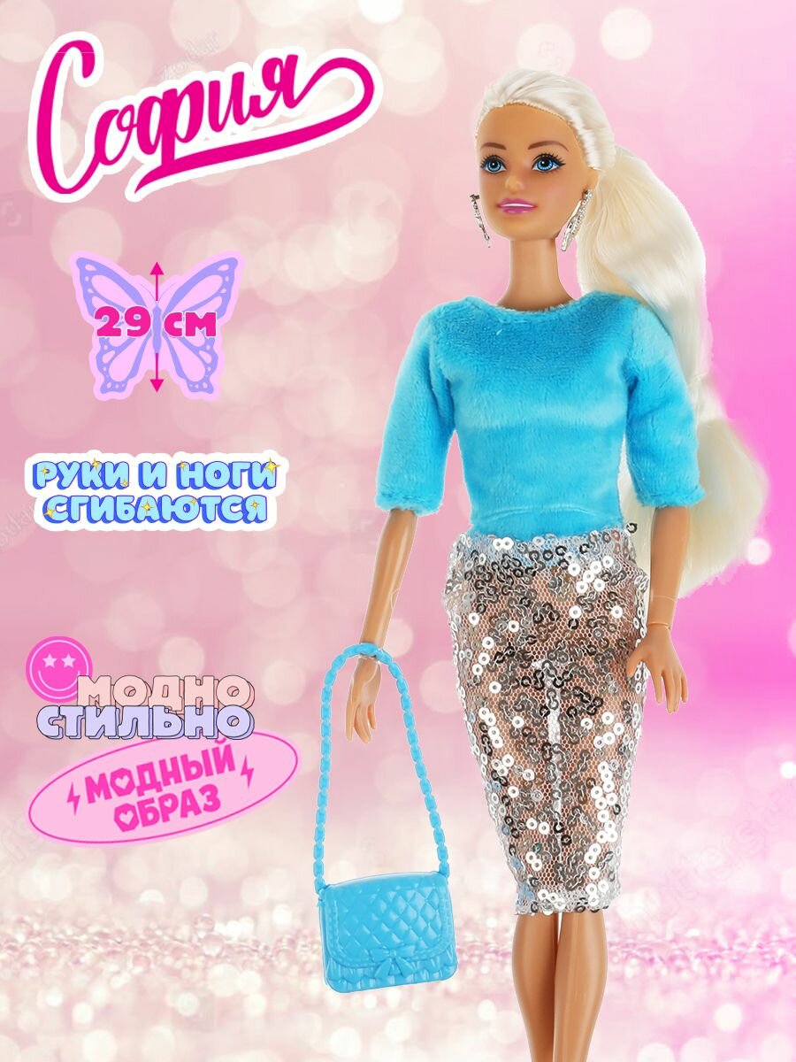 Кукла модельная софия 29 см руки и ноги сгибаются, зимняя одежда карапуз 66001-W10-S-BB
