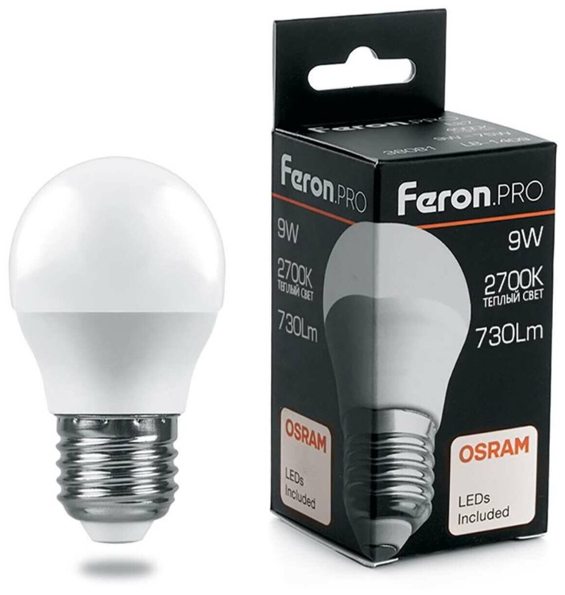 Светодиодная лампа FERON PRO LB-1409 Шарик E27 9W 2700K OSRAM LED 38080