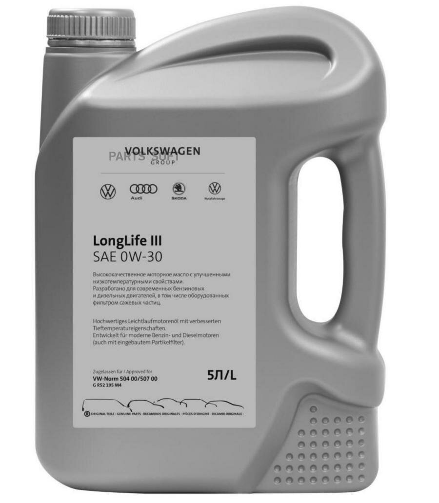 Моторное масло VAG Longlife3 SKODA 0W-30 синтетическое 5 л GSKR52195M4,,,SKODA Longlife III 504.00/507.00 (в замен 5W30)