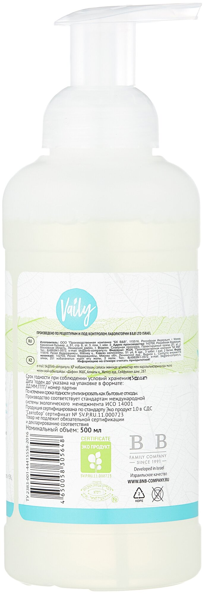 VAILY Пенка для мытья посуды, фруктов и овощей Sensitive с дозатором, 0.5 л интересное: