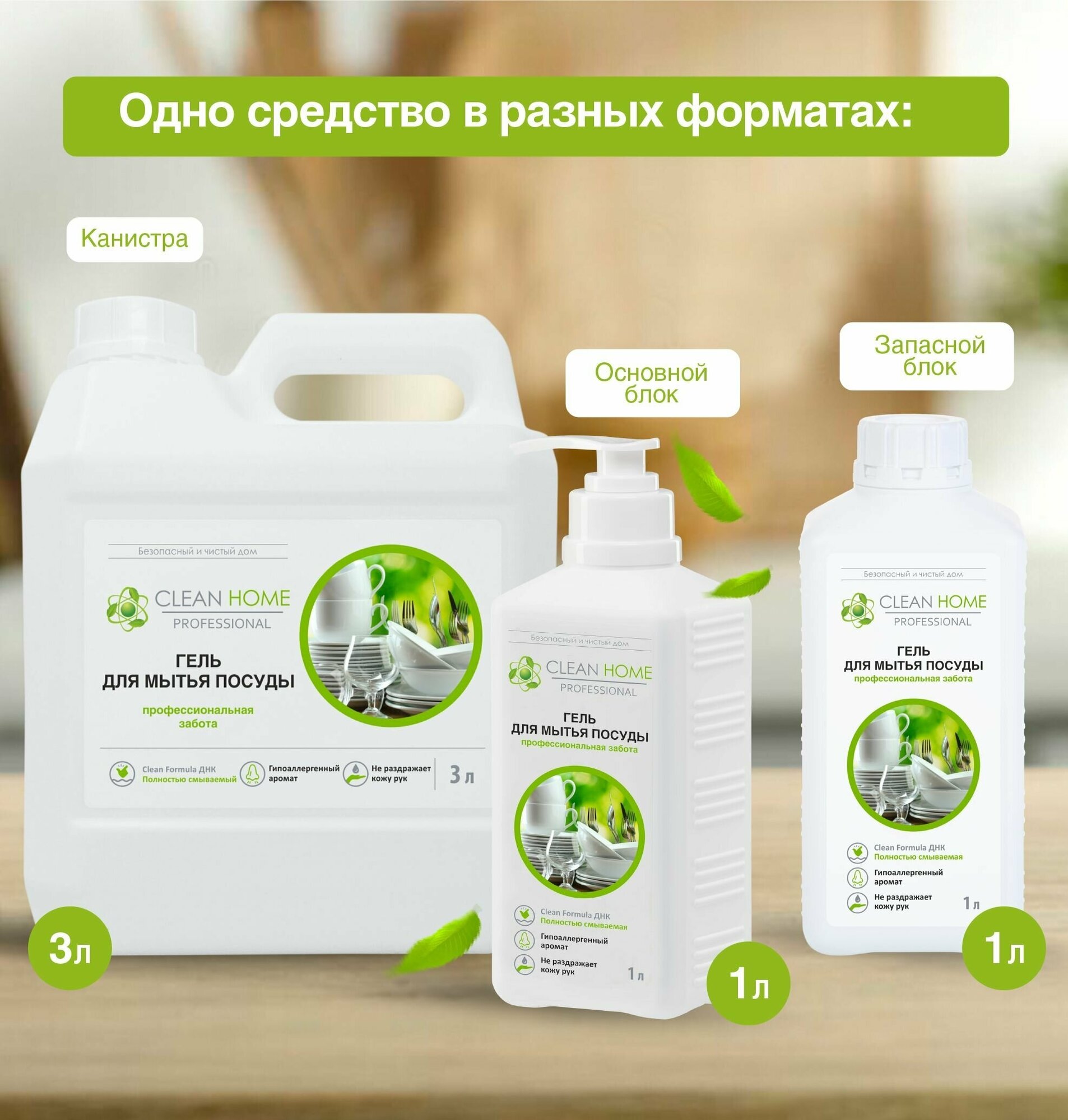 Гель для мытья посуды CLEAN HOME профессиональная забота (запасной блок) 1л 4606531205349
