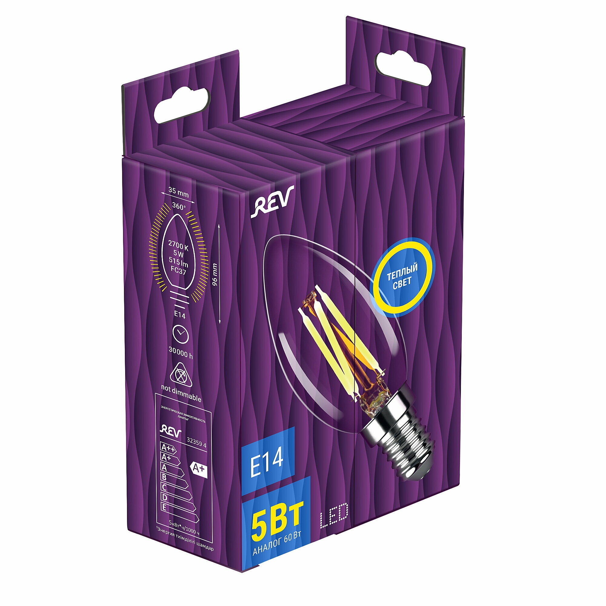 REV Лампа сд Filament свеча С37 E14 5W, 2700K, Deco Premium, 32359 4 .