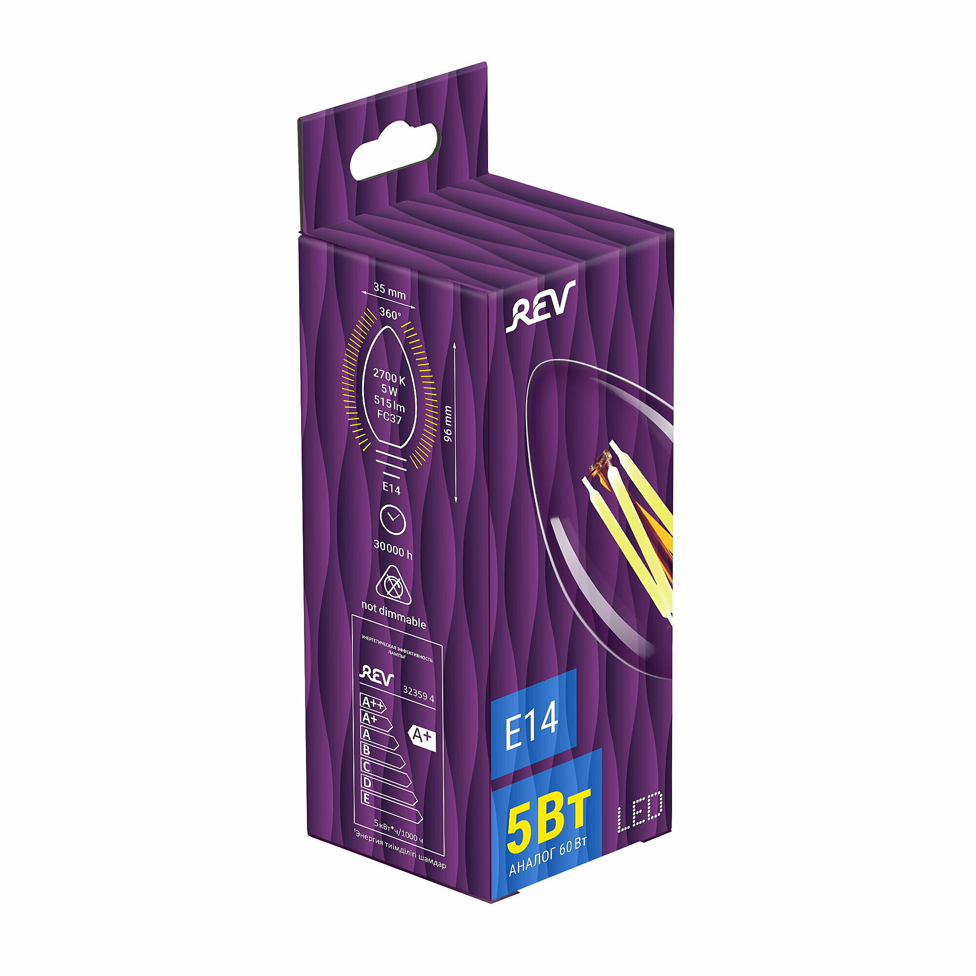 Светодиодная лампа REV FILAMENT свеча, С37, E14, 5W, 2700K, DECO Premium 32359 4