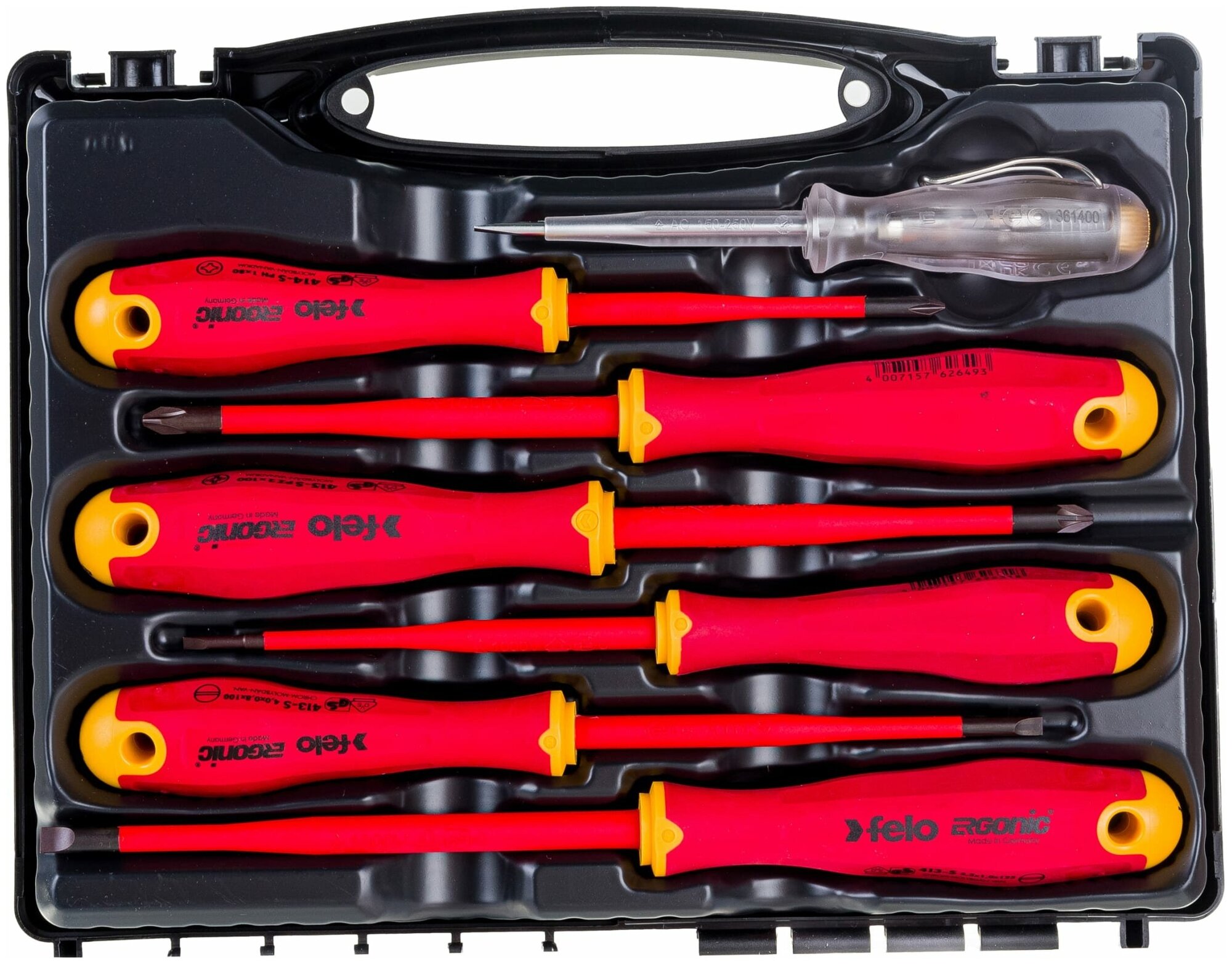 Felo Набор отверток диэлектрических Sl/ph/pz Ergonic E-Slim, отвертка тестер напряжения сети в кейс, .