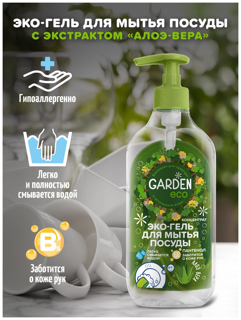Средство для мытья посуды гарден эко 500мл экологичный гель концентрат алоэ вера