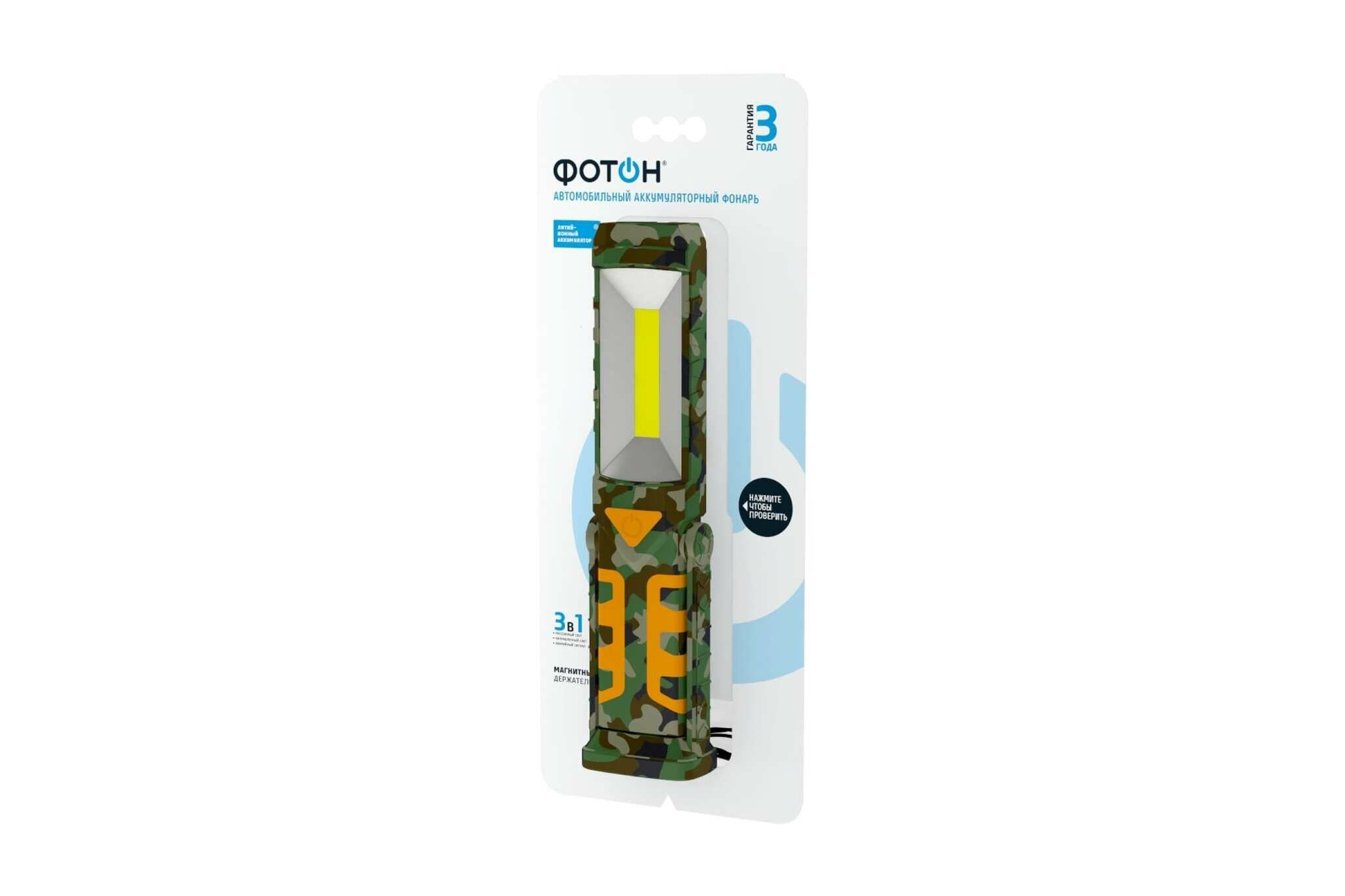 Автомобильный аккумуляторный светодиодный фонарь фотон AU-500, камуфляж 24233 интересное: