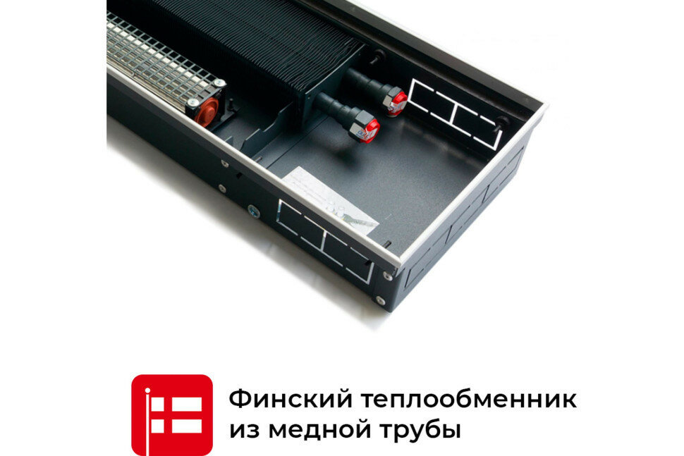 Водяной конвектор Techno Vent KVZV 250 - 85 - 1800 мм (внутрипольный / встраиваемый) с принудительной конвекцией