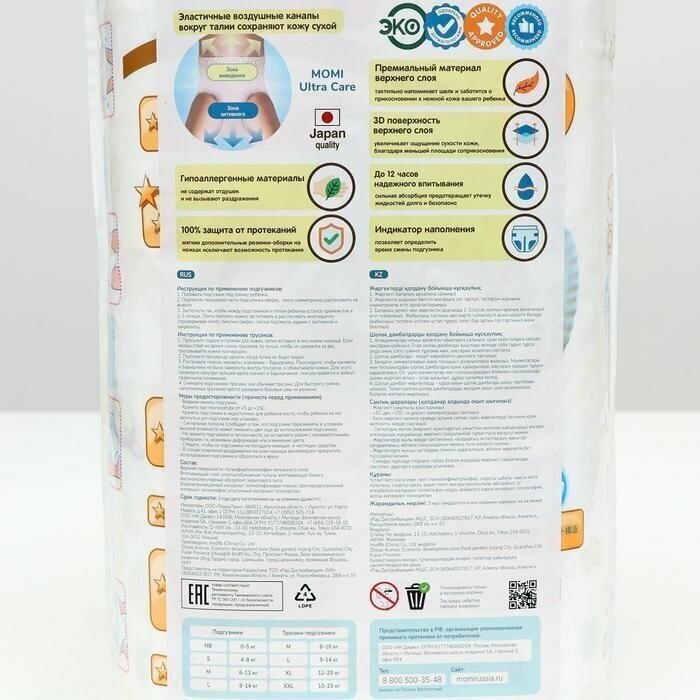Подгузники-трусики Momi MEGA PACK ULTRA CARE XL (12-20 кг). 50 шт