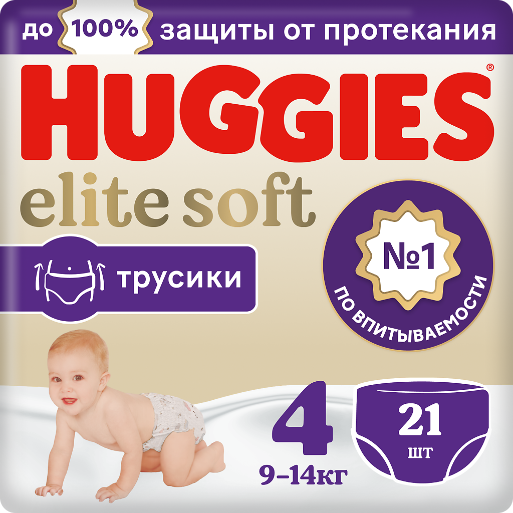 Трусики-подгузники Huggies Elite Soft 4, 9-14кг, 21шт.