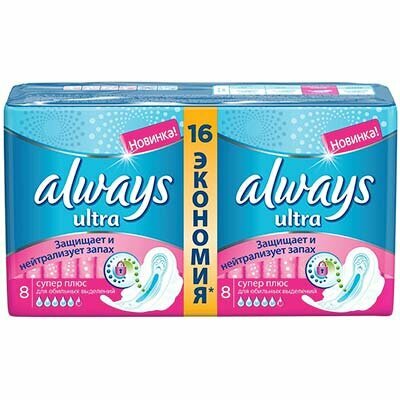 Прокладки женские Always Ultra Super Duo, 16 шт