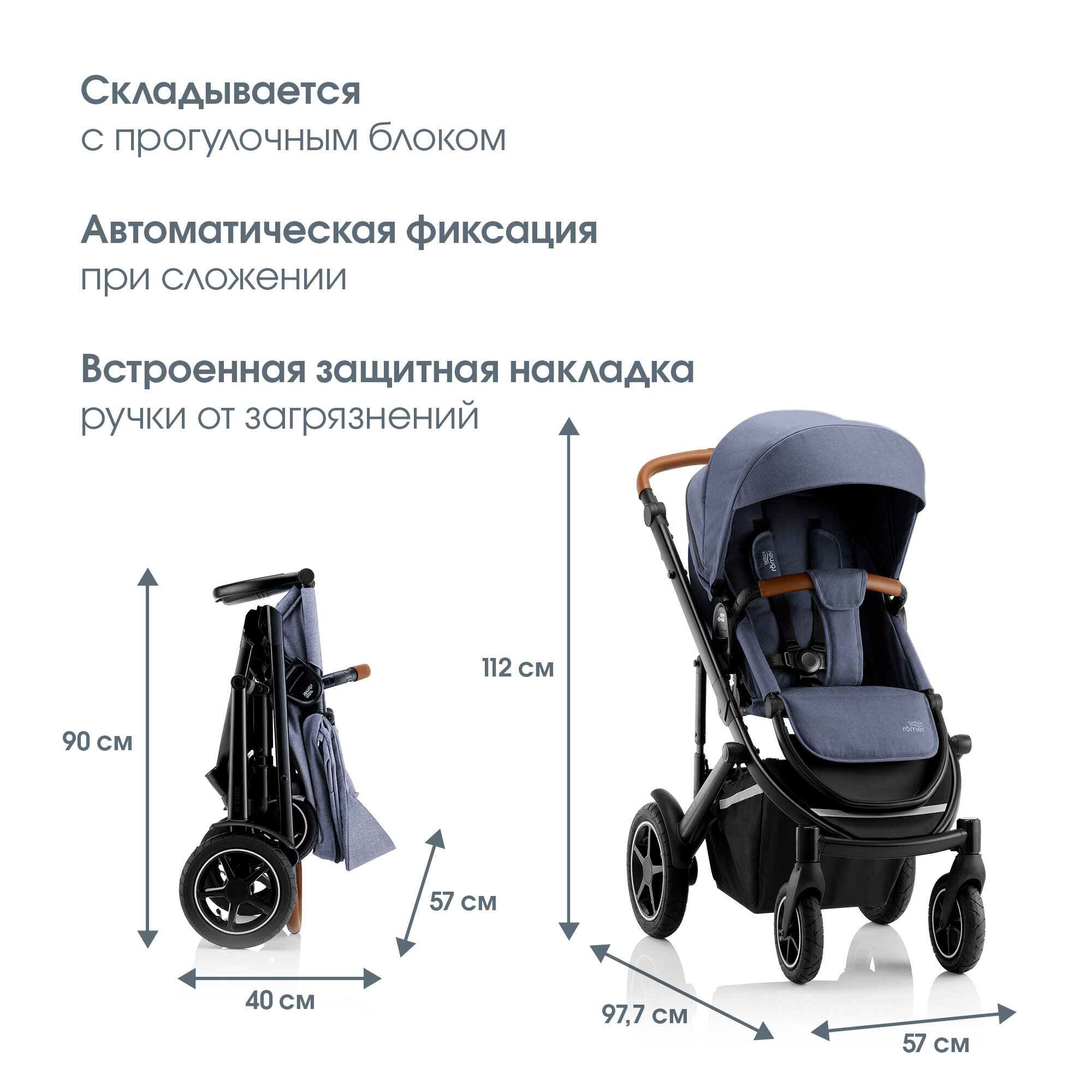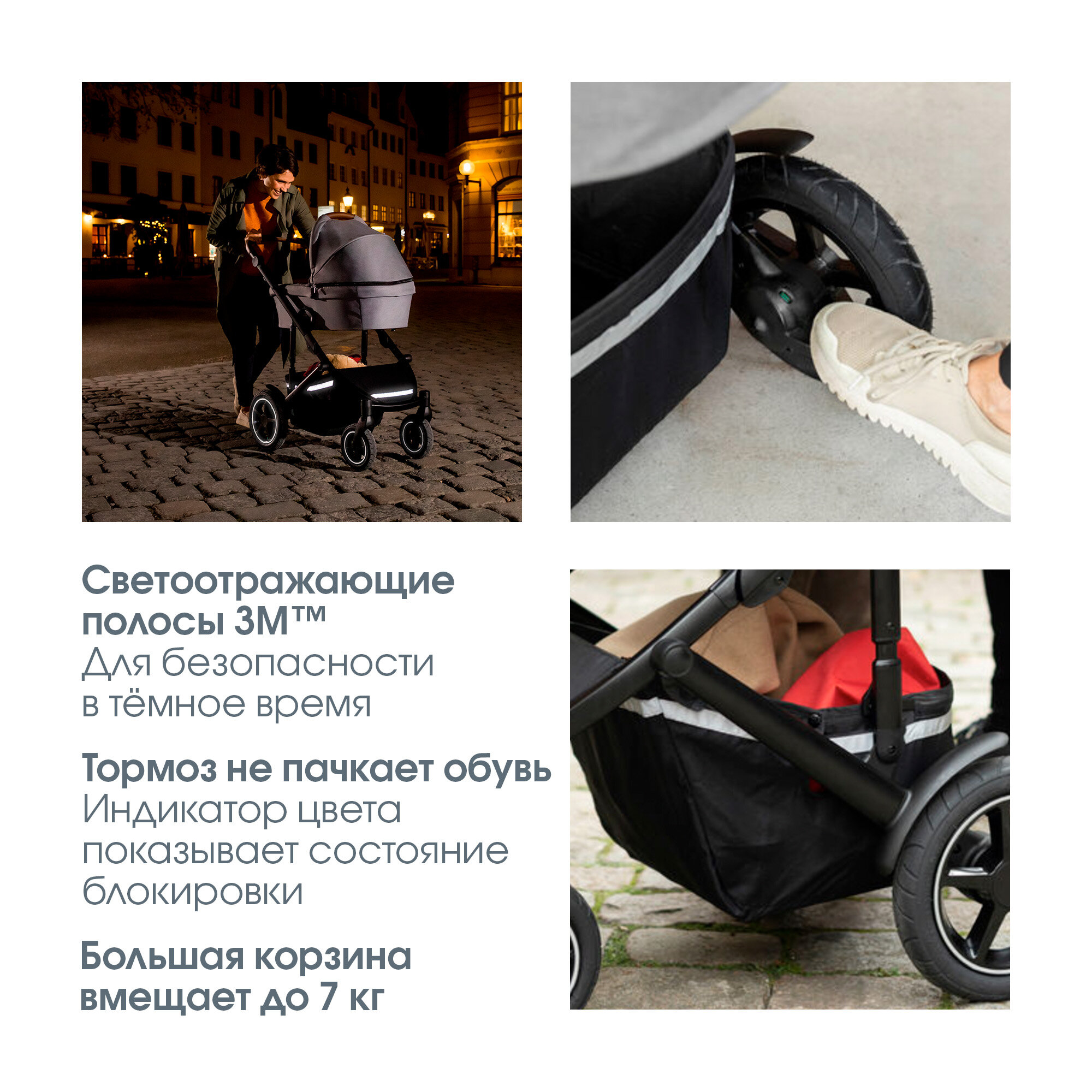 | Особенности шасси | корзина для покупок / перестановка блока лицом/спиной / регулировка высоты ручки |