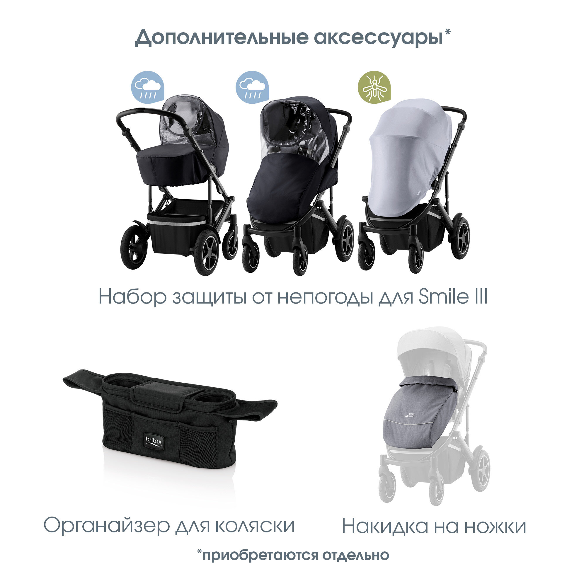 | Аксессуары в комплекте | бампер, накидка на ноги, солнцезащитный козырек |