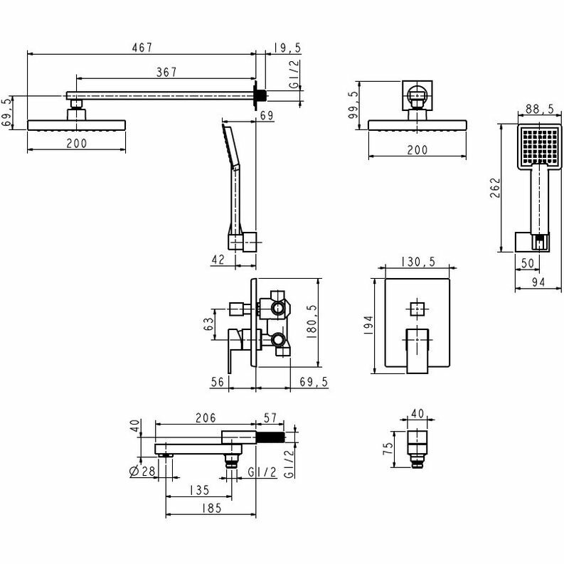 Bronze de Luxe Душевой комплект Bronze de Luxe Scandi 14582BR с внутренней частью, бронза