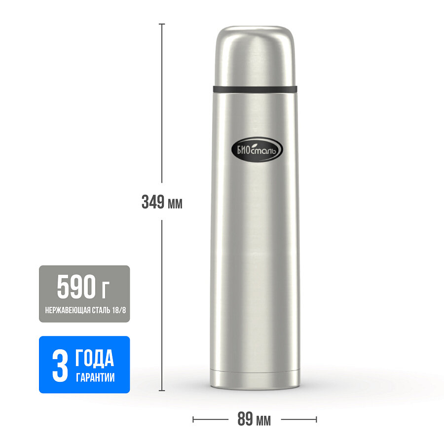 Термос Биосталь из нержавеющей стали, 0,75 литра