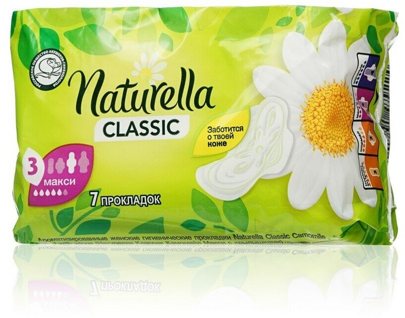 Naturella прокладки Camomile Classic Maxi, 5 капель, 7 шт.