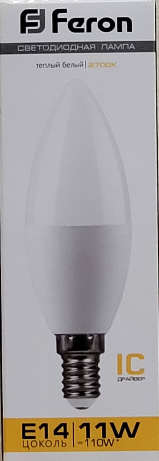 Лампа светодиодная LB-770 Свеча E14 11W 2700K, FERON 25941 (1 шт.)