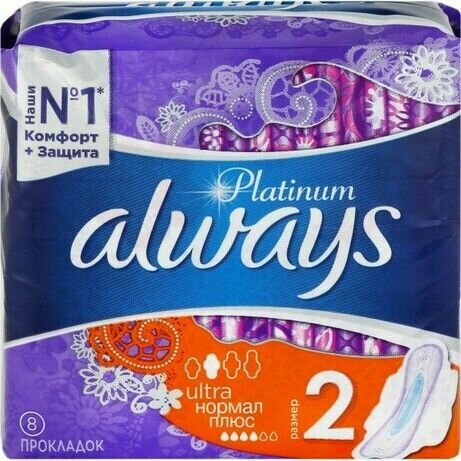 Ниже Вы можете прочитать отзывы на Гигиенические прокладки Always Platinum Ultra Normal Plus 4 капель 8 шт, ознакомится с подробными характеристиками, посмотреть интересные обзоры и фотографии на Гигиенические прокладки Always Platinum Ultra Normal Plus 4 капель 8 шт.