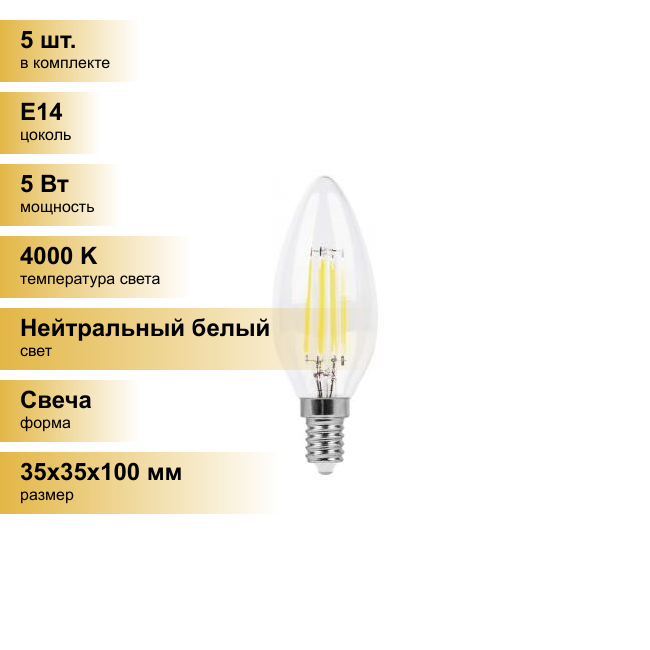 Лампа светодиодная Feron LB-58 25573, E14, C35, 5 Вт, 4000 К