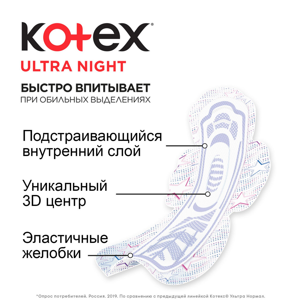 Kotex прокладки Ultra Night, 6 капель, 7 шт.