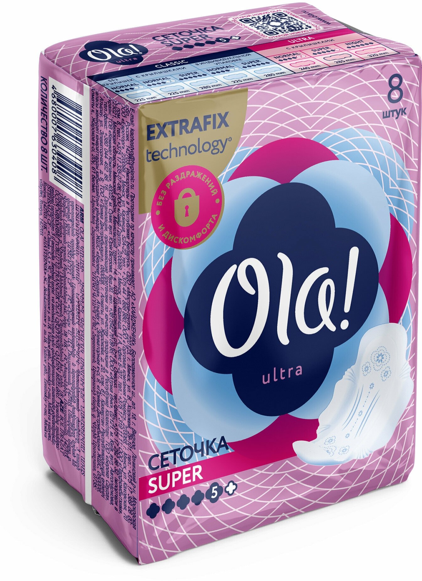 Ola Гигиенические прокладки Ultra Super, бархатистая сеточка, 8 шт в уп