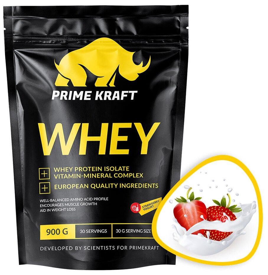 Протеин Prime Kraft Whey, 900 г, клубничный йогурт