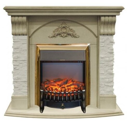 Электрокамин RealFlame Athena STD WT-619G с очагом Majestic Lux Brass