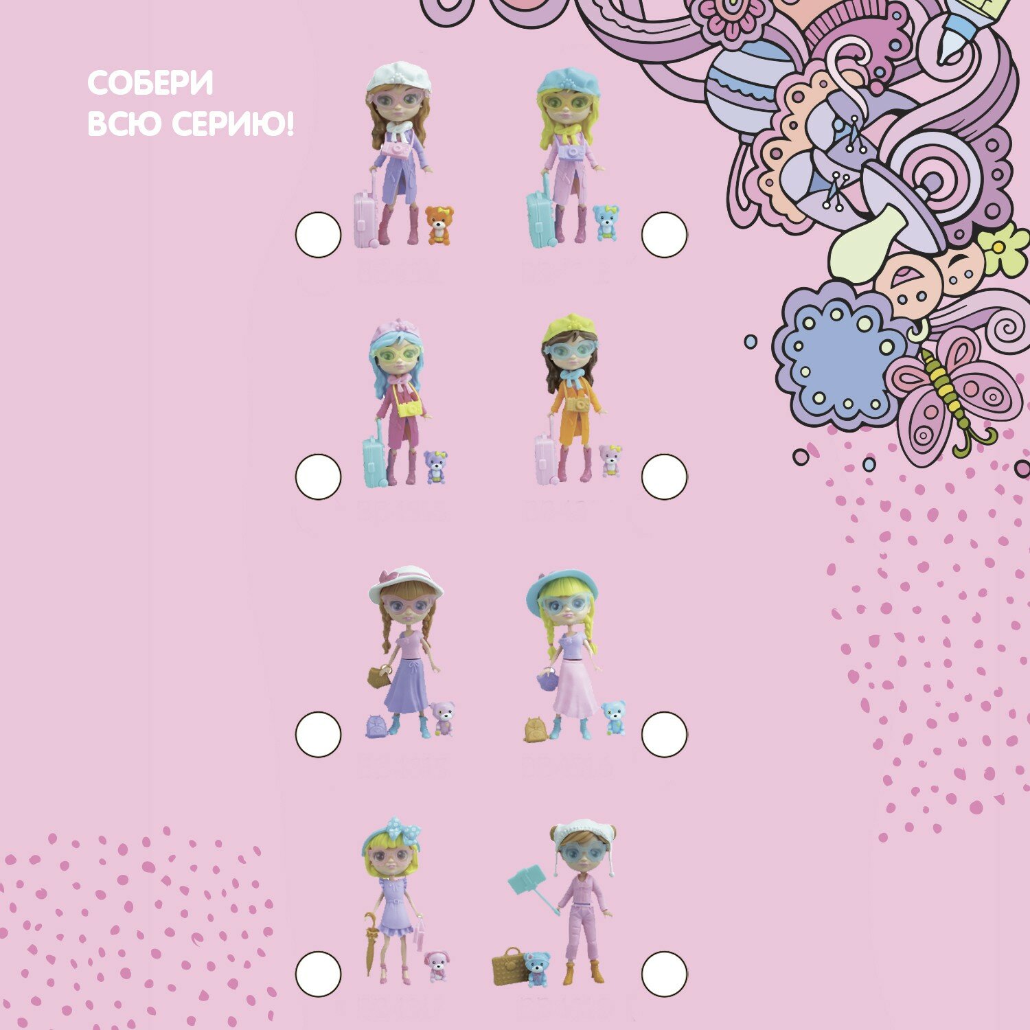 | Комплектация | - кукла; - мишка; - одежда; - указатель; - фотоаппарат; - палка селфи с телефоном; - чемодан. |