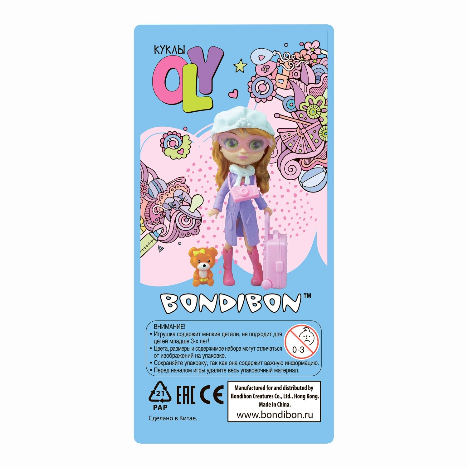 Набор игровой Bondibon ,5см куколка OLY- путешественница c одеждой, аксессуарами и медвежонком, во