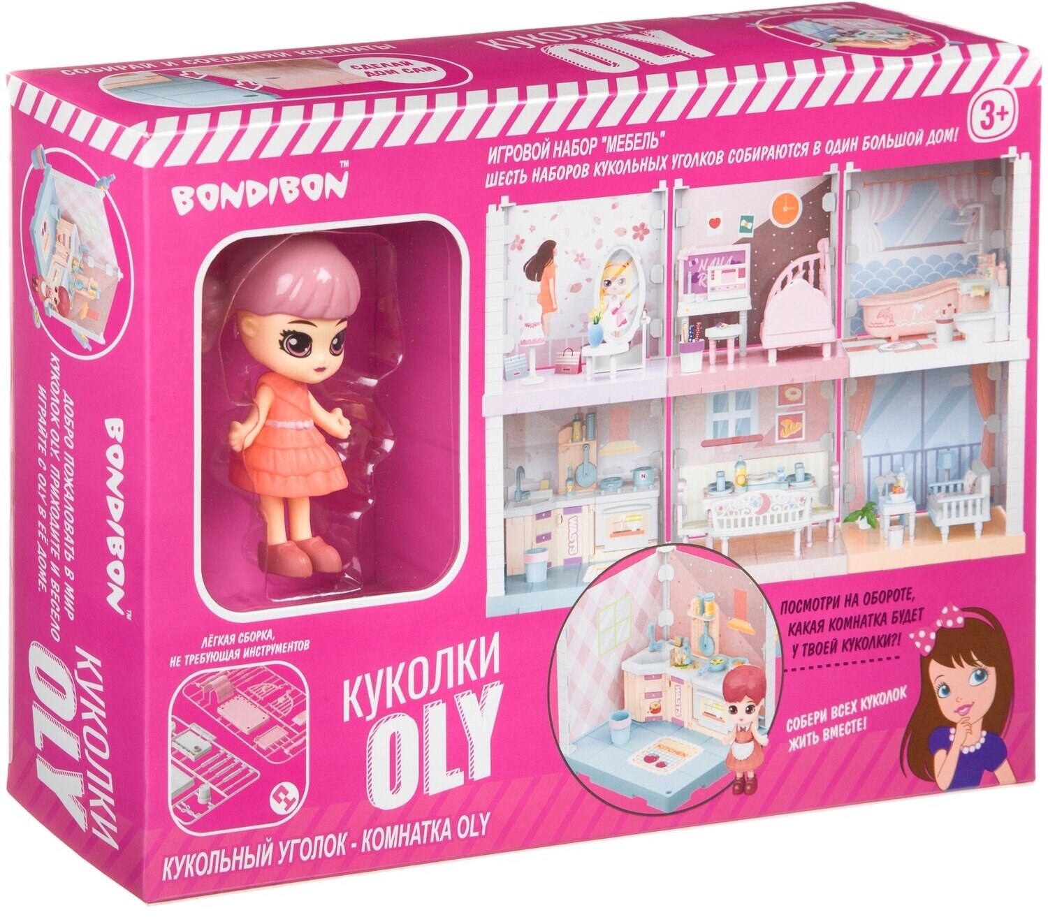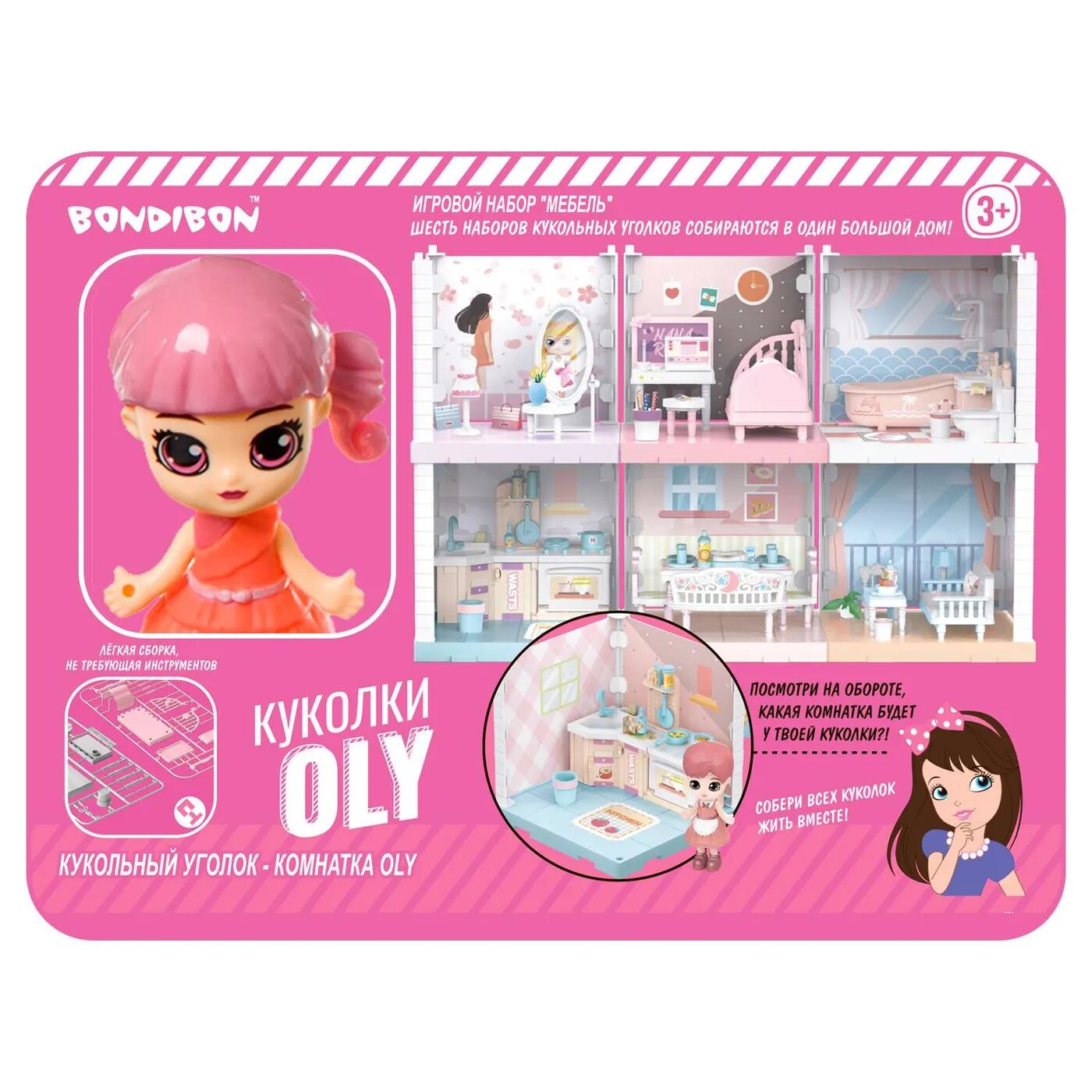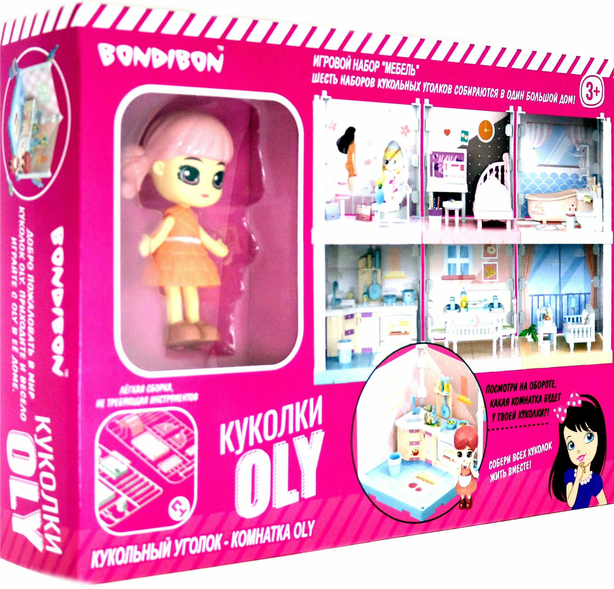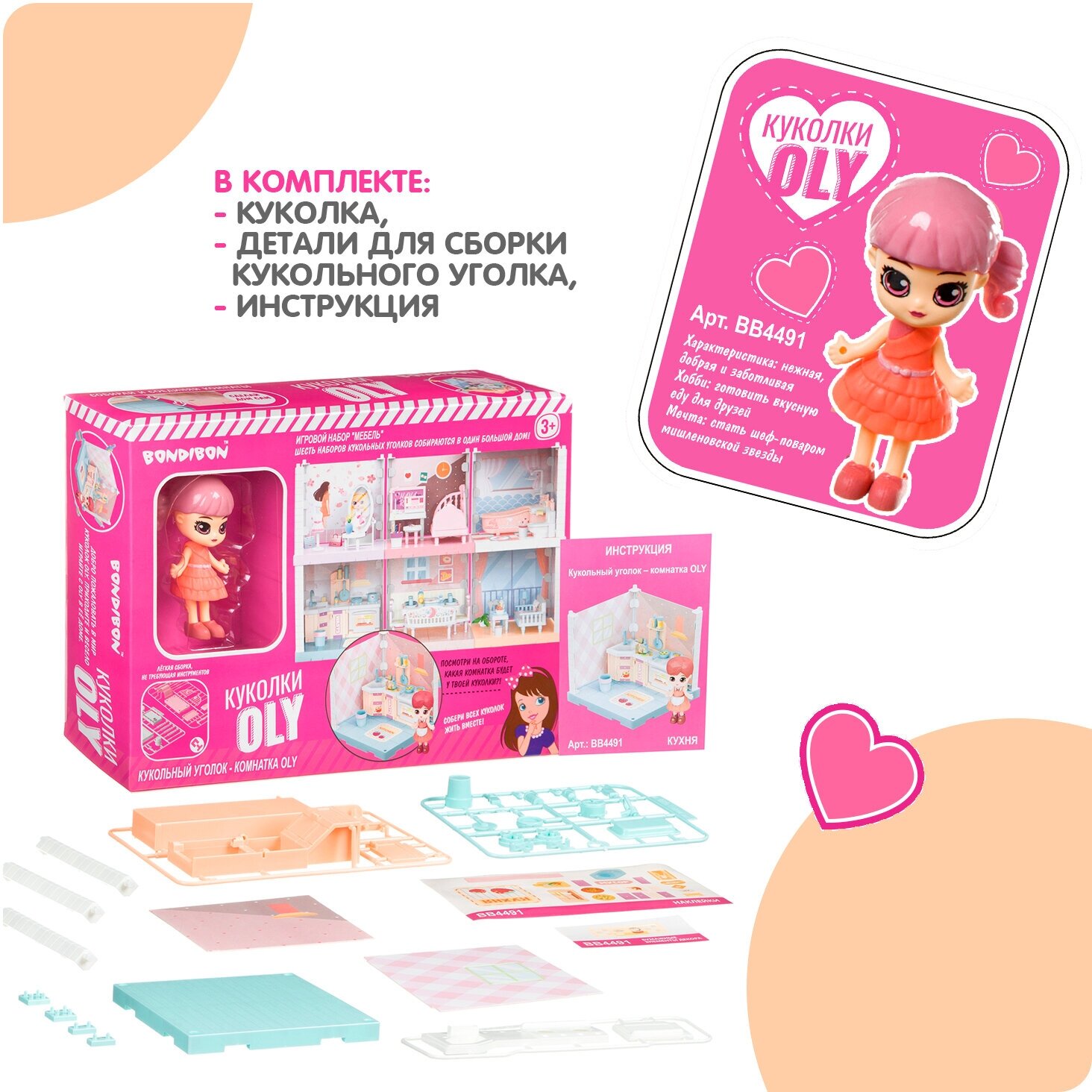 Игровой набор Мебель Bondibon, Кукольный уголок (Кухня 13,5х13,5х13,5 см) и куколка Oly 9,3см, во