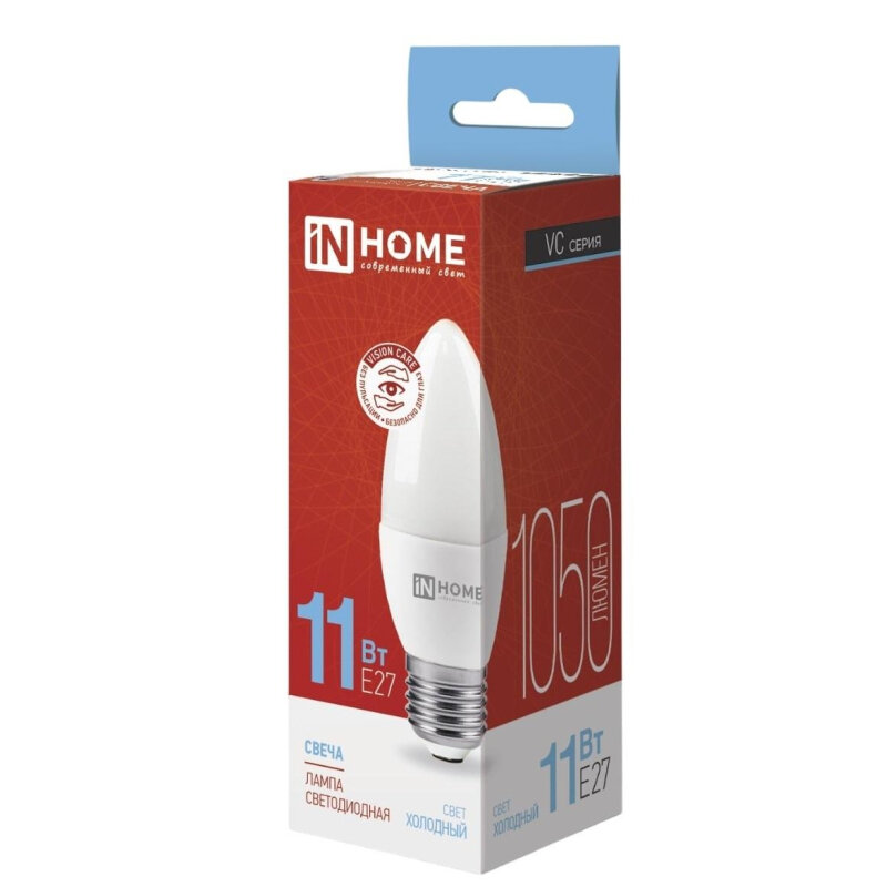 ASD/InHome лампа св/д VC свеча C37 E27 11W(1050lm) 6500K 6K 107x37 (без пульсации) 4868 интересное: