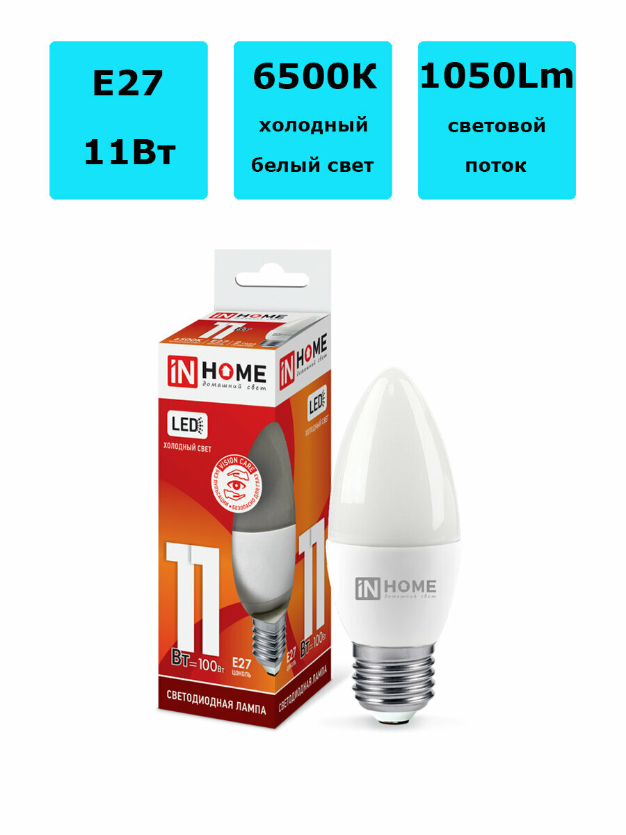 Купить ASD/InHome лампа св/д VC свеча C37 E27 11W(1050lm) 6500K 6K 107x37 (без пульсации) 4868