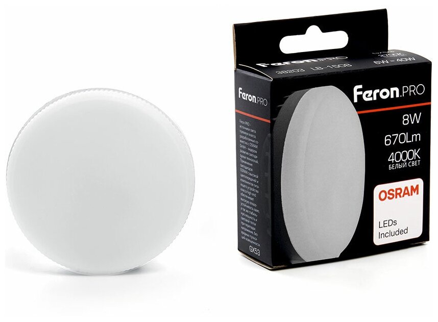 Лампа светодиодная LB-1508 GX53 8W 4000K, FERON 38203 (1 шт.)