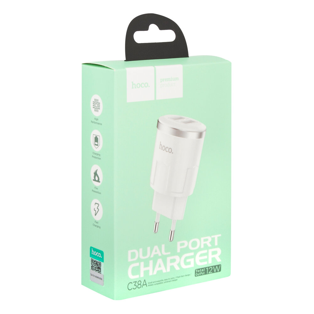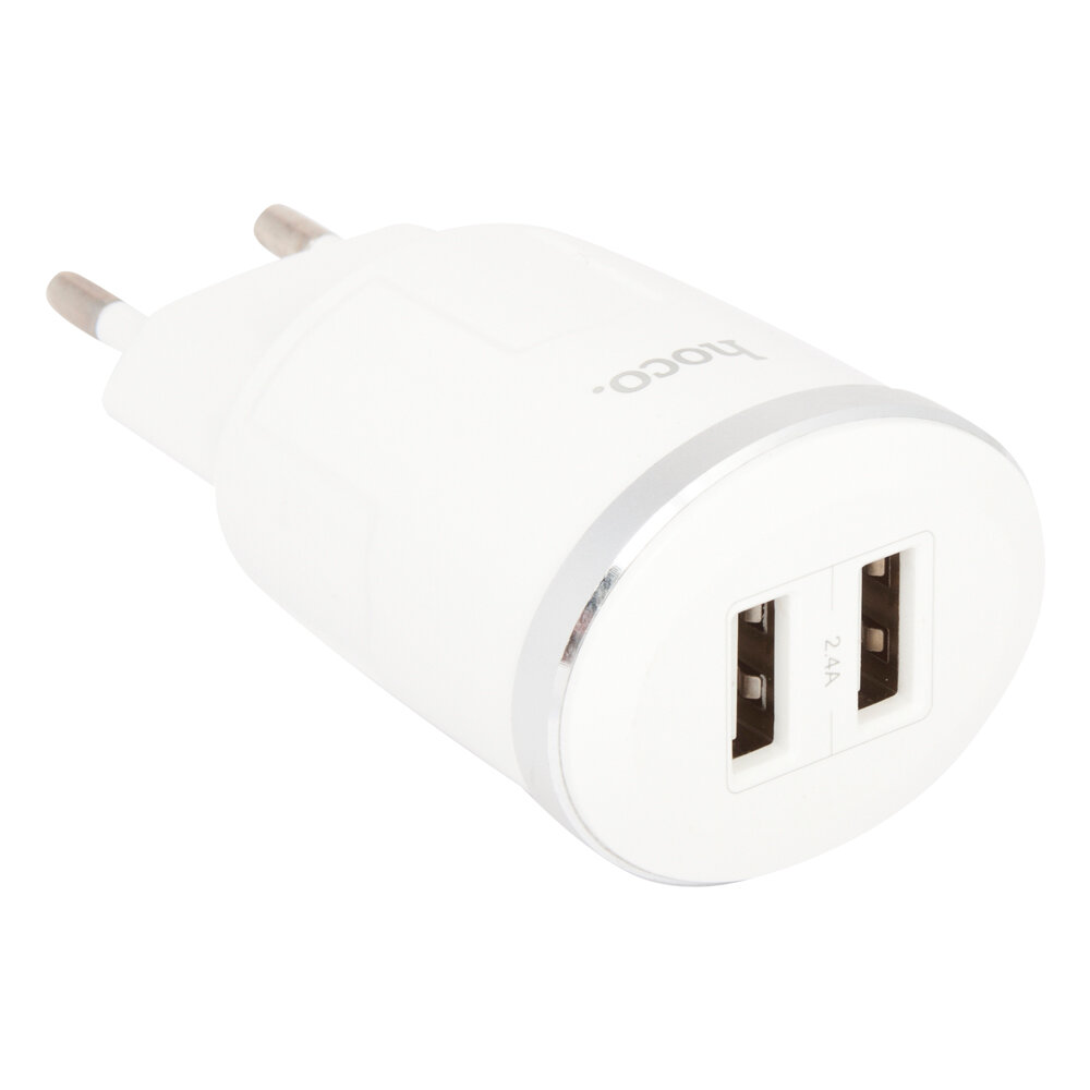 Сетевое зарядное устройство, 2 USB 2.4A (C38A), HOCO, белый